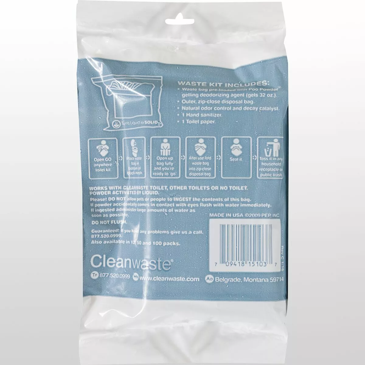 - Can be used with or without Cleanwaste’s Go Anywhere Toilet