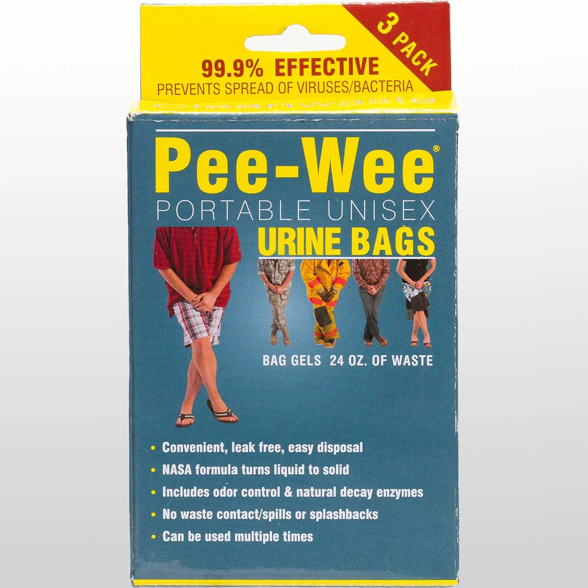 The Cleanwaste Pee-Wee Urine Unisex Urine Bag lets you fulfill your dream of peeing in public. Just aim into the bag. When you’re finished, snap it closed with the no-touch closure system and throw it away in any household trash can. Put a couple in your pack, a couple in your glove box, and one in your emergency kit. It’s your ticket to pee all over the place.*