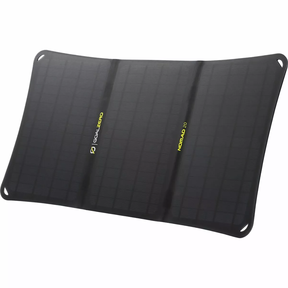 Goal Zero’s Yeti 200X Solar Kit With Nomad 20 keeps you powered up at your campsites. Charge the Yeti 200X at home before you head out or charge it on the go with the Nomad 20 Solar Panel. The Yeti 200X has a handle for easy transport and can be used to charge laptops, lights, cameras, and phones, or even power a portable fridge for up to 10 hours. Multiple output types allow you to maximize your charging capabilities. Charge the Yeti 200X every 3-6 months so you’re always ready to hit the road. The Nomad 20 can be chained with other Goal Zero solar panels or used by itself to charge smaller USB devices. An adjustable kickstand lets you angle the Nomad 20 to pick up the most sunlight possible.