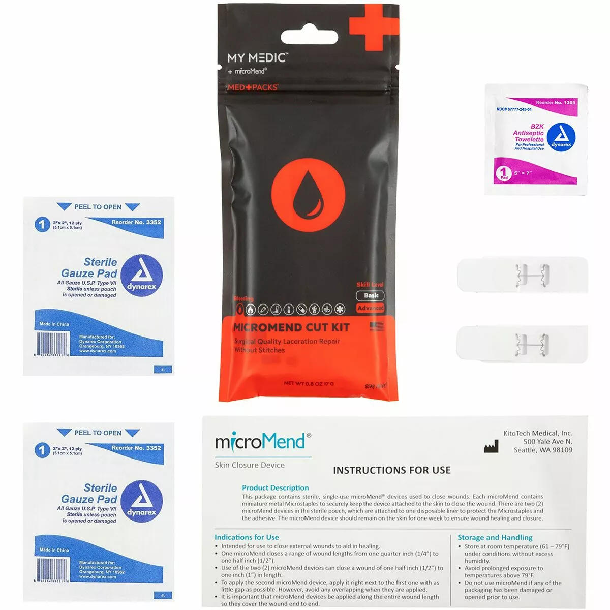- Includes: 2 microMends, Micromend instructions, 2 gauze pad 2″ x 2″, Bzk antiseptic towelette