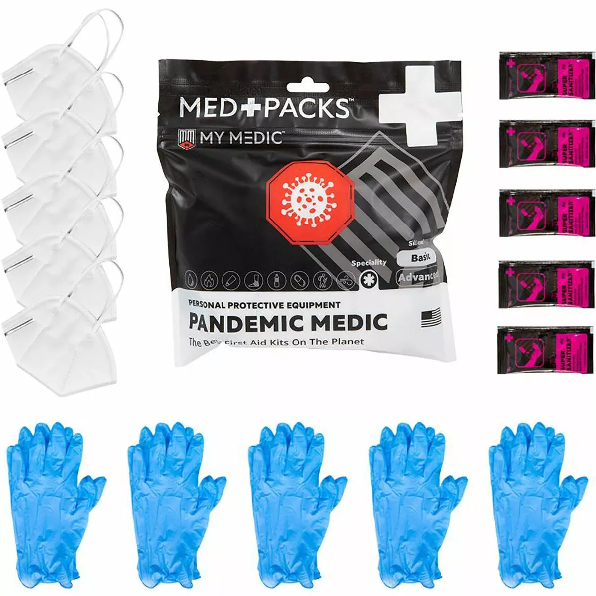- Includes: 5 KN95 masks, 5 pairs nitrile gloves, 5 hand sanitizer uses