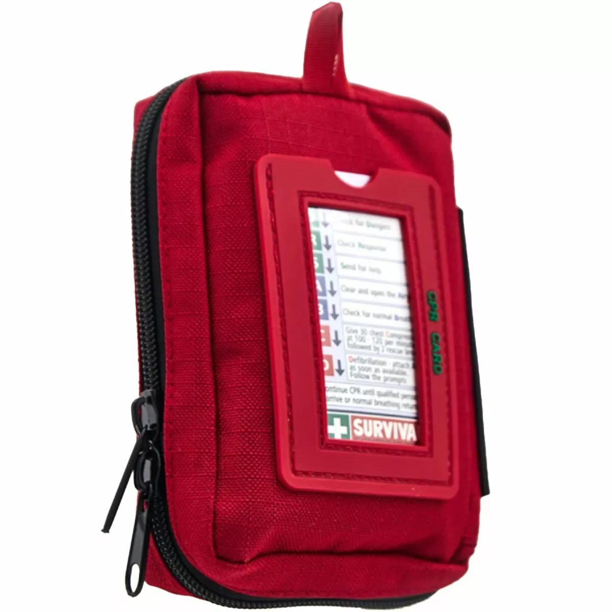 - Includes: 10 x adhesive dressings, sterile, individually wrapped (8 normal size, 2 large size); 1 x bandage sheers, 15cm stainless steel; 1 x CPR card; 1 x conforming cotton bandage 7.5cm x 1.8m; 2 x nitrile gloves (1 pair in CPR KIT); 2 x non adherent dressing, 5cm x 5cm; 1 x resuscitation face mask, disposable; 2 x safety pins; 3 x skin cleaning wipes, with cetrimide; small roll of tape x1; 1 x splinter probes (5 per pack), sterile; 1 x tweezers, plastic x1